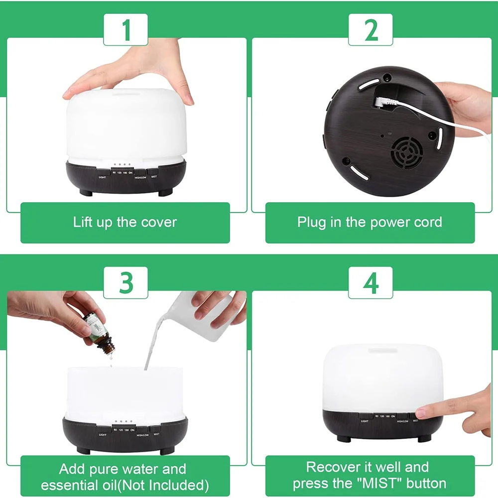 Enhance your home wellness routine with this 500ml ultrasonic essential oil diffuser, perfect for large rooms. Its quiet operation ensures a relaxing and peaceful environment while dispersing soothing aromas. The diffuser comes with remote control functionality, allowing easy adjustments from anywhere in the room. Ideal for aromatherapy, it helps reduce stress and improve mood throughout the day. Its sleek and modern design complements any home decor, from bedrooms to living rooms. The large water capacity allows for extended use without frequent refills. Safe and energy-efficient, it automatically shuts off when the water runs low. Perfect for use with essential oils to create a calming atmosphere. Lightweight and easy to move, it can be placed on desks, tables, or shelves. Upgrade your space with this functional and stylish ultrasonic oil diffuser for ultimate relaxation and wellness.